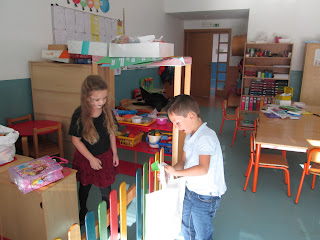 Com o que recebemos trabalhámos a matemática: fizemos conjuntos e em seguida dividimos por todos o que recebemos.