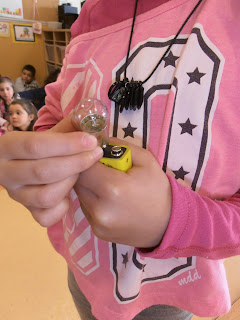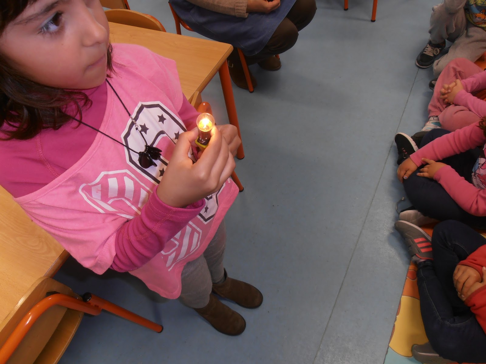 Colocámos a lâmpada no pólo positivo e não deu luz, depois no pólo negativo e mais uma vez não deu luz...quando encostámos a lâmpada no pólo negativo e positivo ao mesmo tempo...magia!!!!...apareceu luz.